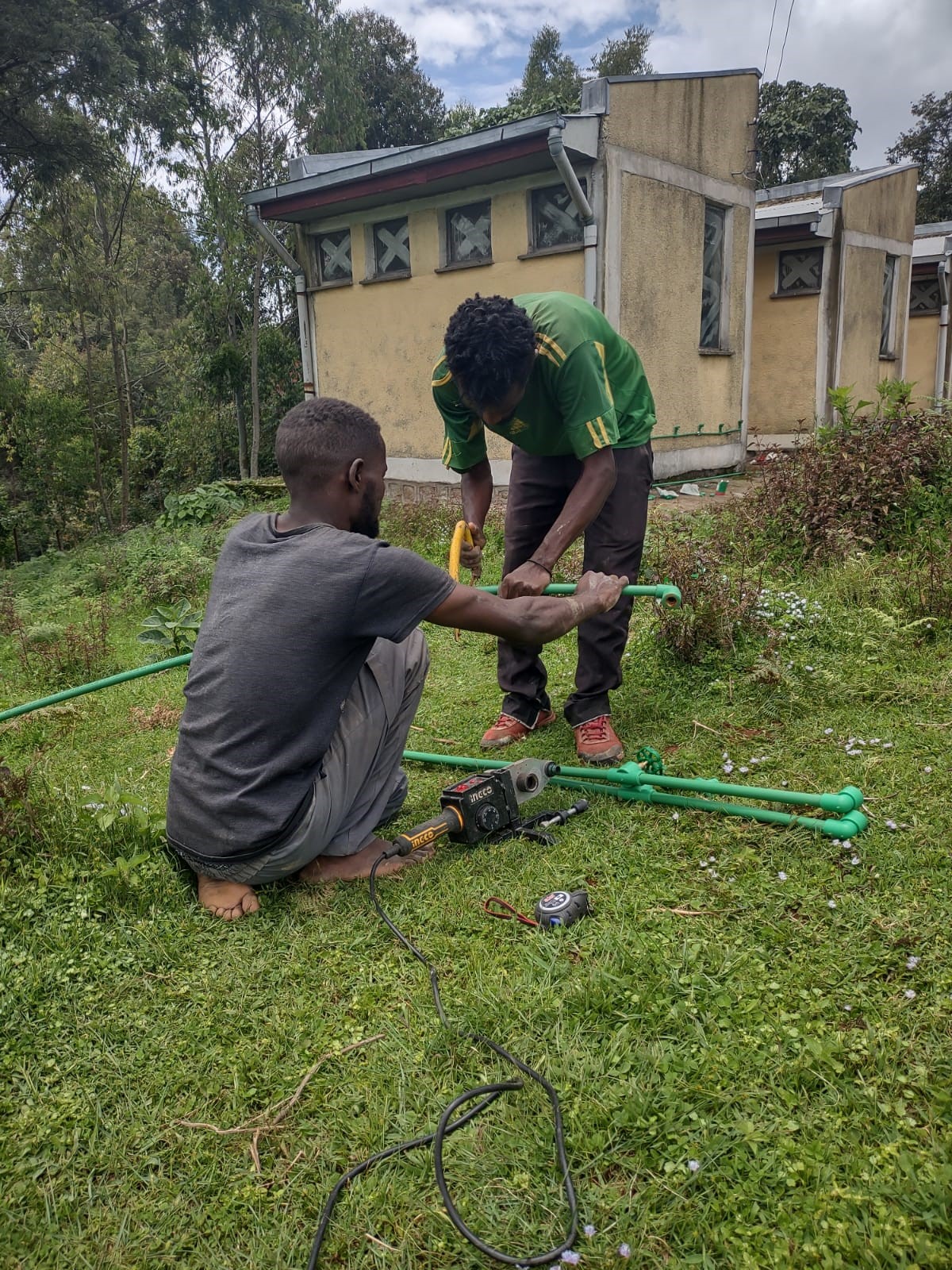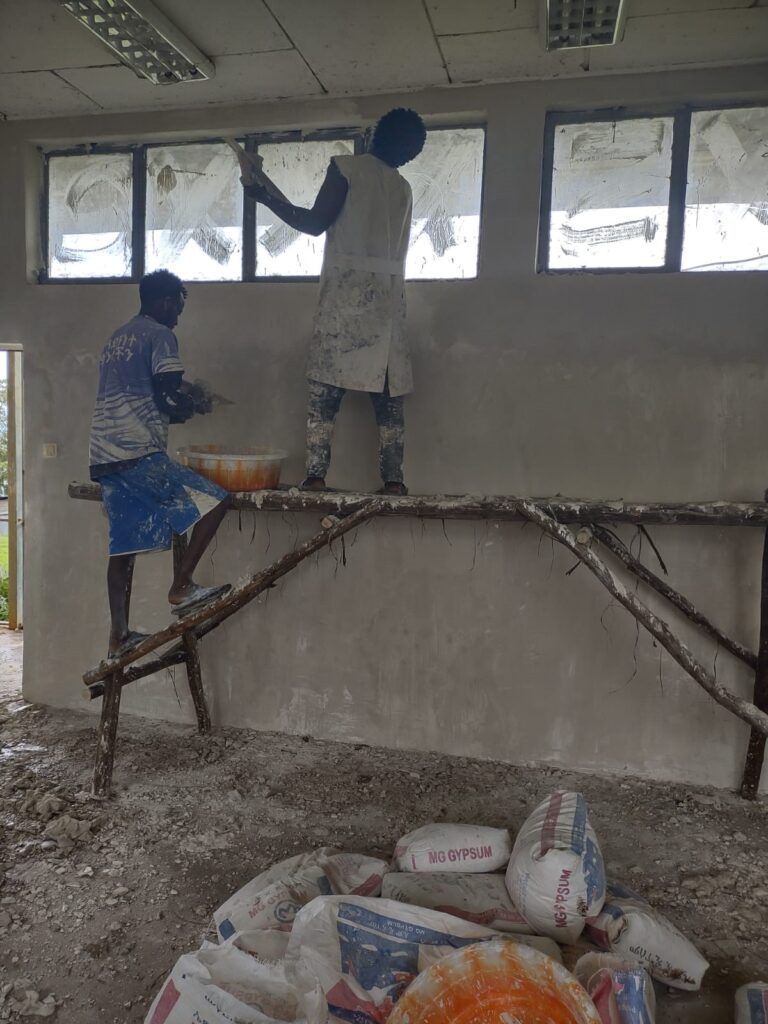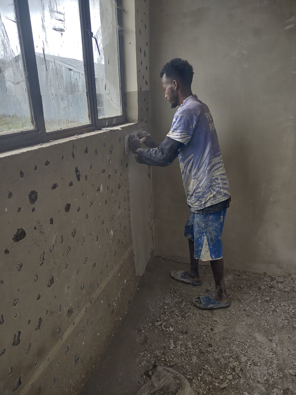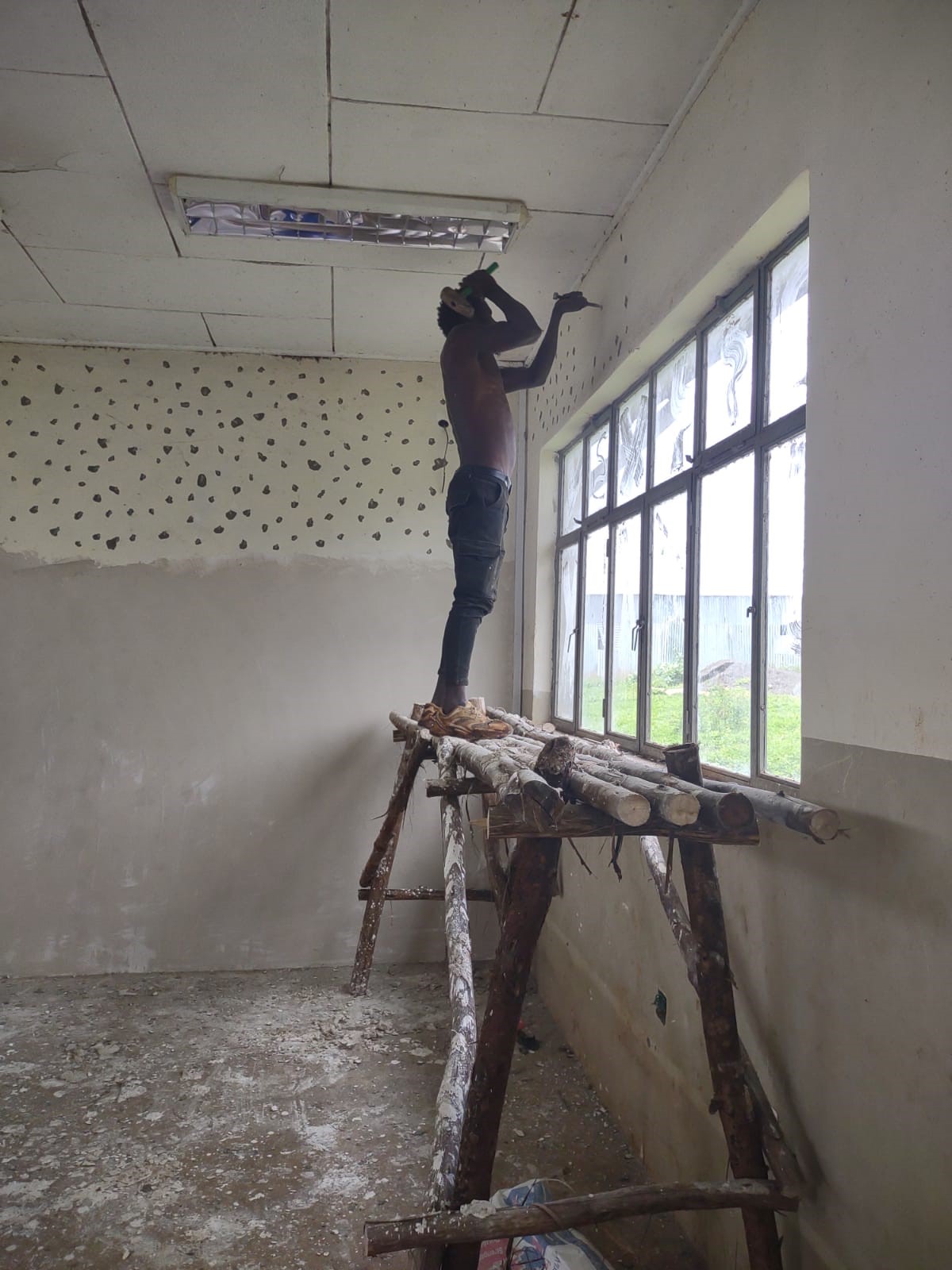 Die Vorbereitungen zur Eröffnung der Schule schreiten voran: inzwischen wurde die Wasserleitung für die Toiletten gelegt, das Klassenzimmer verputzt und die Außenfassade gestrichen.